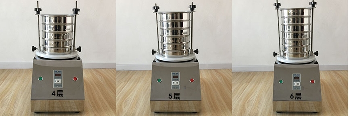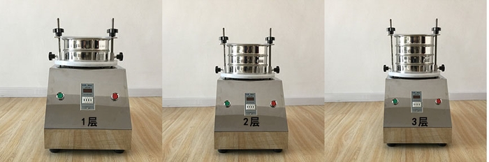 二、把標準篩具按孔徑從大到小,從下到上依次疊放到托盤座上,由凹槽或定位螺絲對標準篩具進行定位。